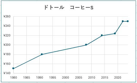 ドトールのオープンからこれまでの値段推移については「コーヒーの値段はどのくらい値上がりしてる?」をご覧ください。